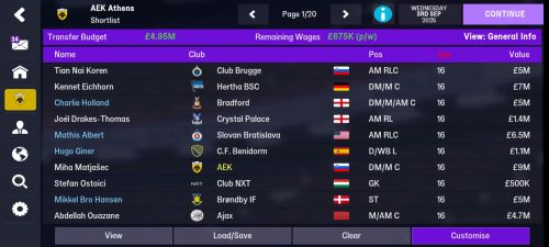 This is a scouting app for FMM23 (Android), letting you: See the CA, PA, hidden attributes, etc for any player. Search for players by many parameters (CA, PA, Age, position, foot, name, club, some hidden attributes, etc). Export the current view of players to a FMM shortlist so you can import them into your FMM shortlist. NOTE: This will only work with FMM23, it will NOT work with FMM24 when it comes I plan to release a new app called AM24 (for FMM24). This will be released on Google Play and will not be free. Installation You will need to allow APKs to be installed from sources other than Google Play and you will also be prompted to allow installation from this source. Once opened for the first time, the app will look for save files in a couple of common places. If it finds them, you will see buttons for each save file found. If it doesn't find any save files, you will need to tell the app where the save file folder is and there is a serious bug here. This is what you need to do: You will be prompted with the Find Folder button. Press this. You then need to find the Games folder and press the green tick / check mark in the top right corner. Note it won't show any files, only folders. It SHOULD then take you back to the main screen and show you buttons for each save file BUT there is a bug and it doesn't show them. You need to close the app fully (back button and say Yes) and then open it again. It should then show the save file buttons. After that, everything should work fine. This is only a problem the first time you open the app and choose the folder. After that, the app should remember the folder and be able to show the buttons. I will not be fixing this in AM23 - the open file logic is pretty complicated and needs a total rewrite, which it will get for AM24. Overview Here's an overview of the app (from last two years ago, but pretty much the same): For those following along Last year I said: This version was supposed to be going onto Google Play, but it needs to comply with their newer (more restrictive) file permission model to be accepted. I can't do that without updating to the latest version of the programming language I'm using, and I can't update without a complete rewrite of the app. It does actually work with the latest version of Android, so I'm releasing it here for free and embarking on a total rewrite for AM23. As it turns out, there are some serious issues with making this work with Android's newer file permissions model. I couldn't work these out this year, but will try again next year. Support, etc The app shouldn't cause any problems, but it is an "use at your own risk" app. If you find any problems with the app, feel free to post them below BUT a) I don't have much time to spend on this now and b) I had to downgrade my development environment to release the app and I need to update it again soon (and won't be able to make any changes after that). So... there may be little to no support this year. There will only be an Android version in the short term. Longer term I'd like to be able to do an iOS version, or at least a web version if that's not possible, but don't hold your breath! Have fun! Though remember using this app is against the rules of the challenges here on Vibe if you're doing one of them. -